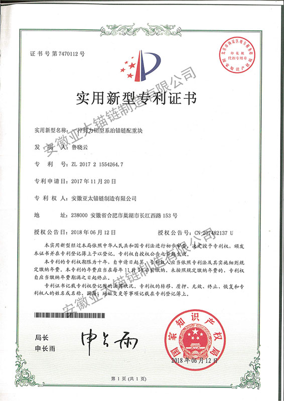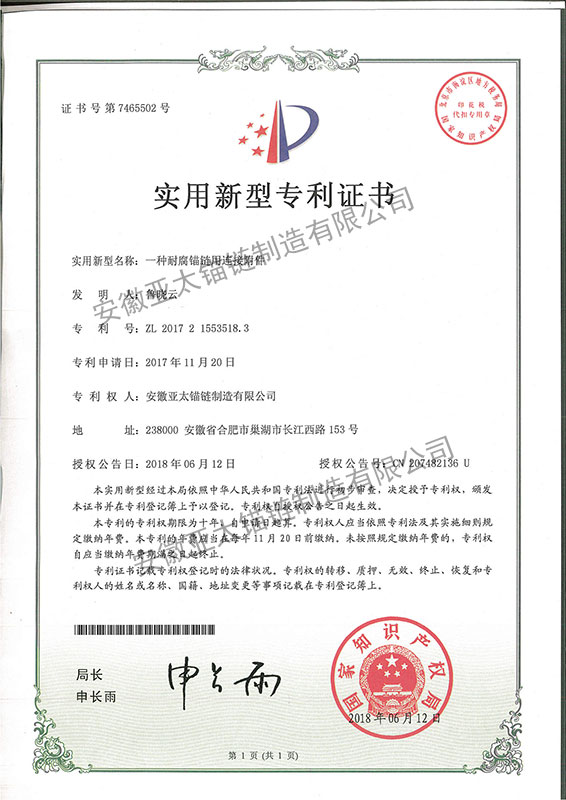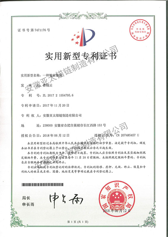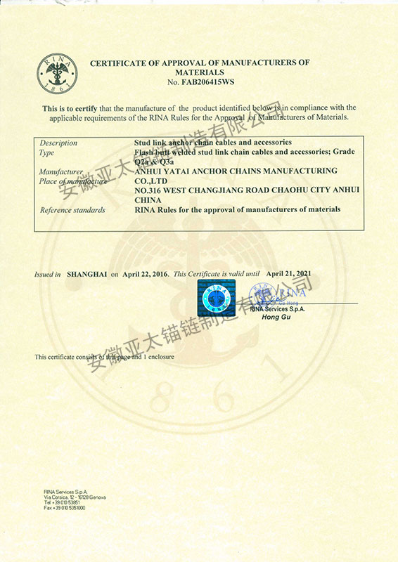 安徽亞太錨鏈制造有限公司是國家高新技術(shù)企業(yè),也是國家GB/T 549-2017《電焊錨鏈》標準的起草和制定單位之一。公司旗下設有錨鏈分廠、浮標分廠、舾裝件分廠等多個分廠。公司專業(yè)從事φ12.5mm-φ107mm二、三級船用錨鏈、浮標錨鏈、錨鏈附件,錨、船舶曬裝產(chǎn)品、航標、系船浮、船型標、多種規(guī)格海洋監(jiān)測浮標及航標燈等產(chǎn)品的生產(chǎn)、安裝和服務。目前公司的產(chǎn)品銷往全國各地船廠、碼頭、航標處、航道局、海洋局,并已走上國際市場,如東南亞、中東、歐美等國家。